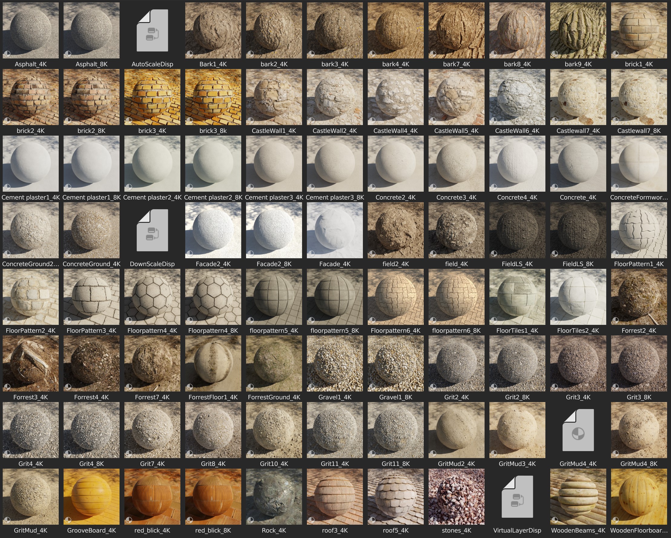 85 High Quality Texture-Sets in 4K made with Photogrammetry! All seamless! All with Displacement Maps! Made from real world!